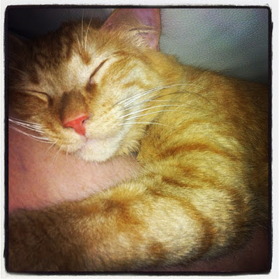 While at the shelter, I discovered another ball of fun - Mr. Johnnie. This fat, orange tub of love, began swirling my legs, claiming me for his own.